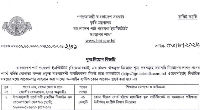 Bangladesh Jute Research Institute Job Circular 2025