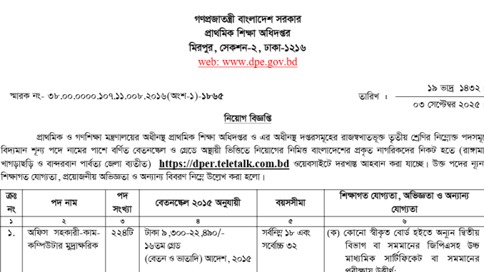 Directorate of Primary Education DPE Job Circular 2025