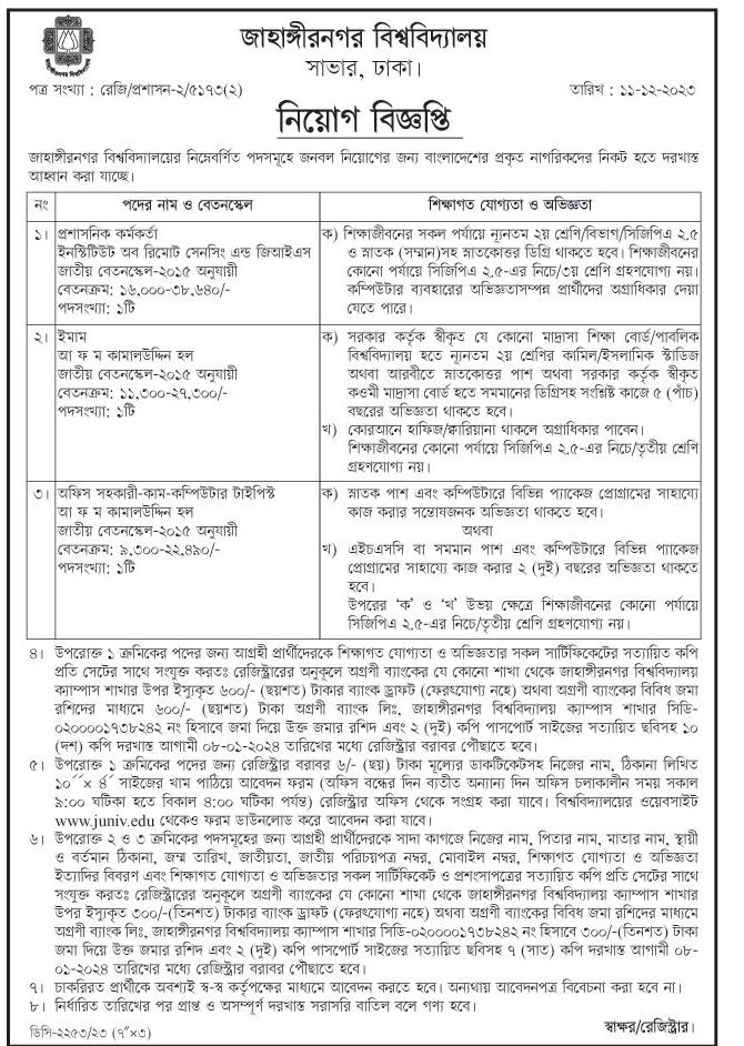 Jahangirnagar University Job Circular 2023