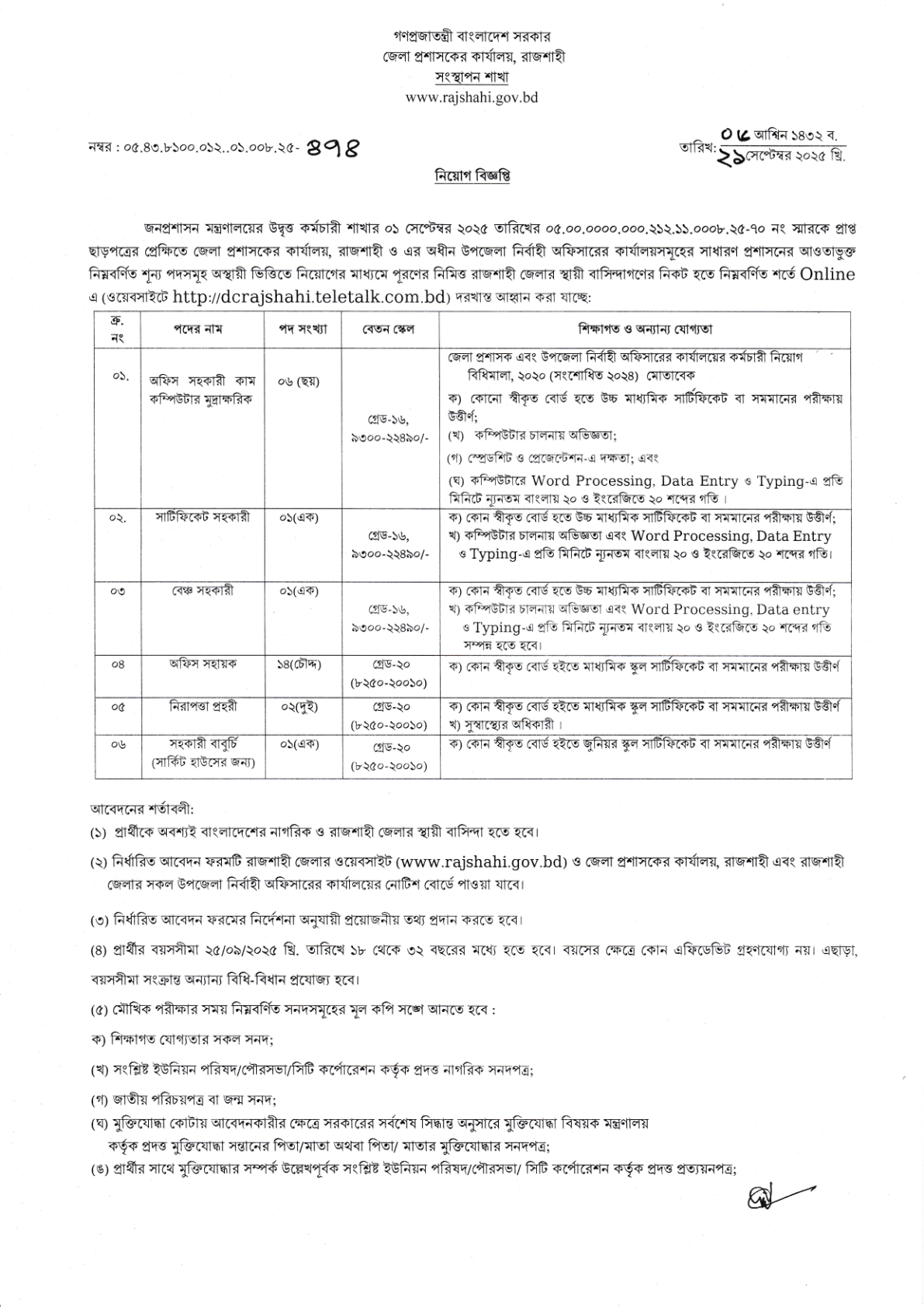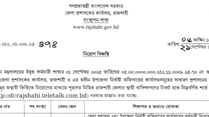 Rajshahi DC Office Job Circular 2025