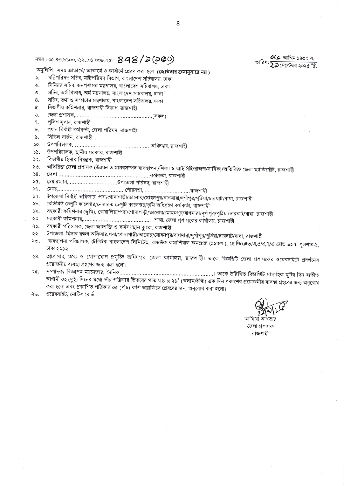 Organization Name: DC Office, Rajshahi