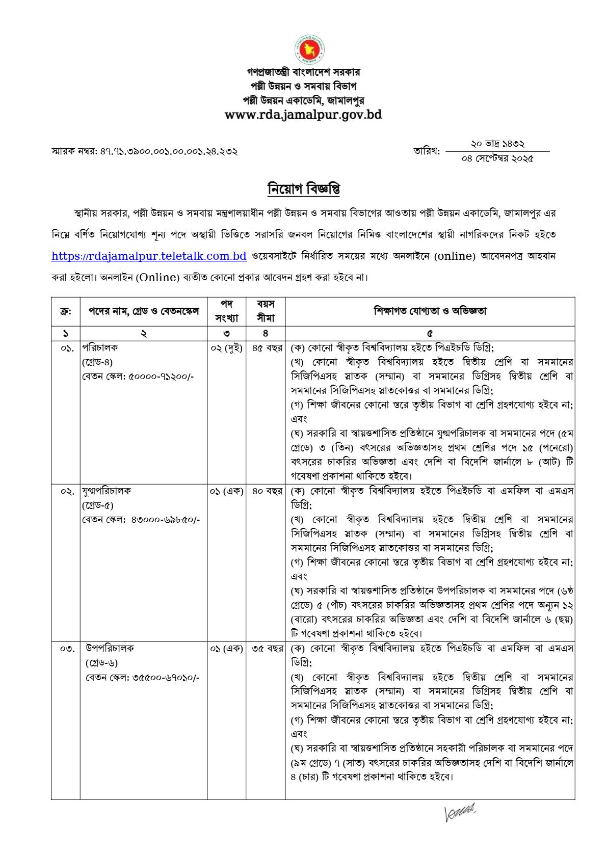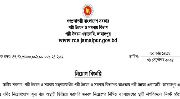 RDA Jamalpur Job Circular 2025-www.rda.gov.bd
