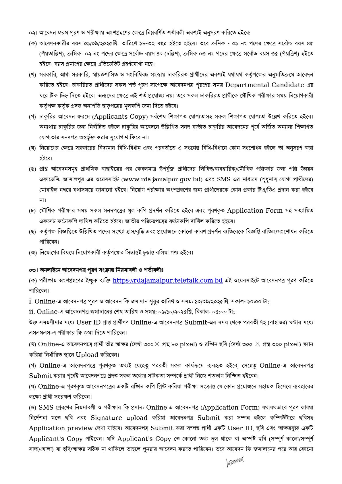 See/download Rural Development Academy Jamalpur Job Circular 2025, Job Application Form, Job Apply Instructions, Application Fee, Payment Process, Salary, Age, and Other Information from the images below: