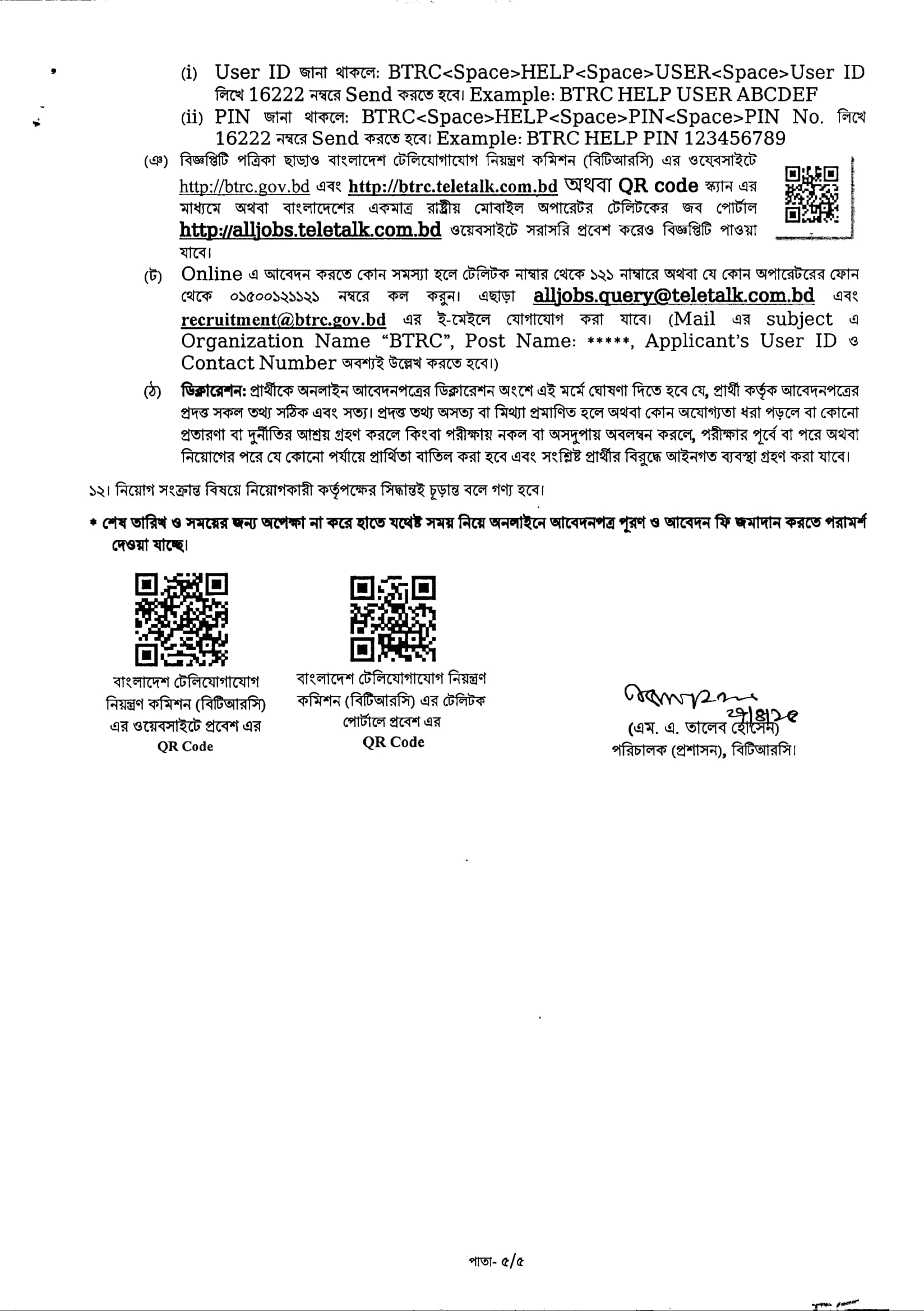Please check brtc job circular 2025 given below on image file. They required few years experience for some position. Also fresher are encouraged to apply some position. See carefully below image file if there any post position right for you then we say to apply as soon as possible. Also please refer your friends the jobs circular they they also can apply if they have required academic qualification and experience. See bangladesh telecommunication regulatory commission job circular 2025.